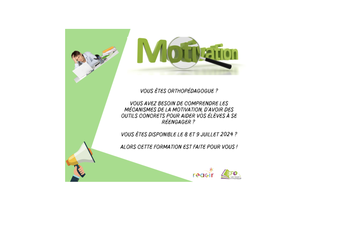 Formatrice et tutrice à l’École Française d’Orthopédagogie, je donne chaque année une formation sur la motivation des apprenants et la remédiation orthopédagogique. Un moment de transmission et de partage d’expériences et d’outils.
